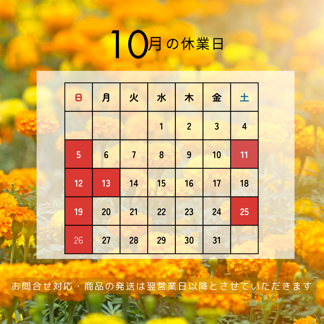 いつも当店をご利用いただきまして、ありがとうございます。 8月のお盆期間は通常の営業日とは異なり11㈪,13㈬,14㈭,15㈮,が休業となり 9㈯、12㈫、16㈯は通常営業となります。 お休みの間は電話やメールでのお問い合わせにもご対応いたしかねますので、ご了承くださいませ。 また、公式通販サイトからのご注文に関しましては、通常営業日に順次発送となり、通常よりお届けまでの日数をいただく場合がございます。何卒よろしくお願い申し上げます。